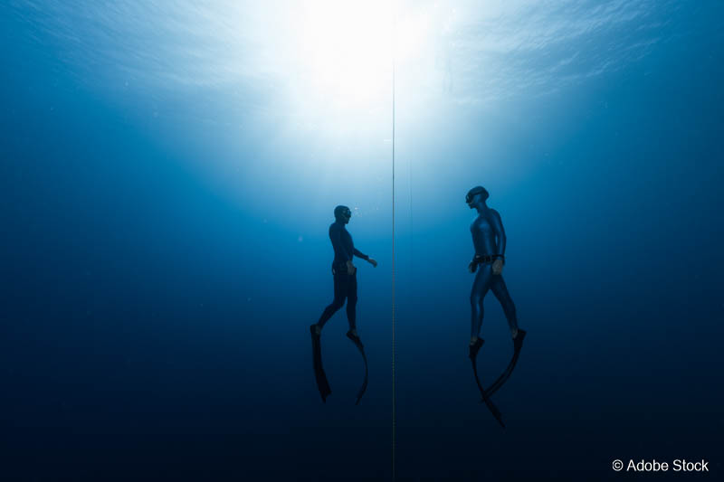 Nie allein tauchen – Apnoetaucher sollten immer mindestens zu zweit unterwegs sein. Der Buddy kann im Notfall eingreifen.