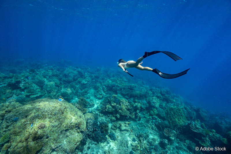 Auch wenn Freitauchen ursprünglich minimalistisch ist, gibt es sinnvolle Ausrüstungsgegenstände, die Komfort und Sicherheit erhöhen: