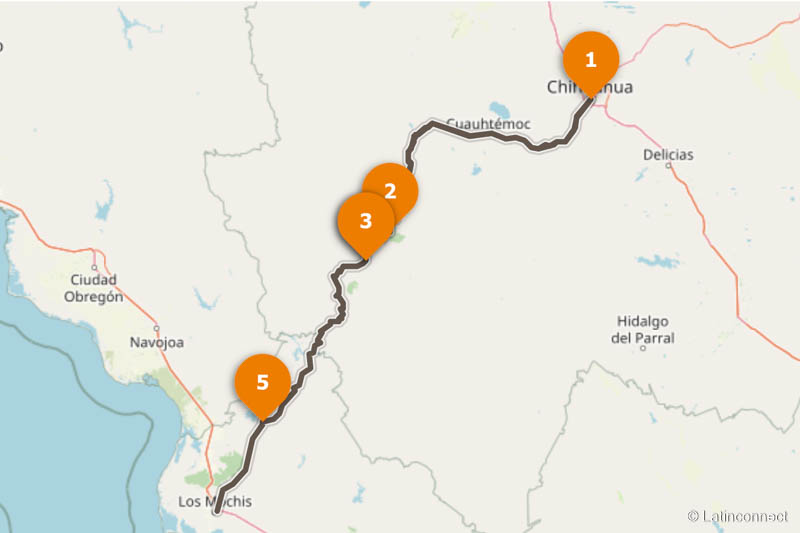 Für Reisende, die lieber in entgegengesetzter Richtung unterwegs sein möchten, gibt es auch die Möglichkeit, den CHEPE EXPRESS von Los Mochis nach Chihuahua zu fahren. Diese Variante startet ebenfalls an festen Wochentagen – in der Regel montags, mittwochs und freitags, analog zur Strecke von Chihuahua nach Los Mochis. Der Reiseverlauf und die Sehenswürdigkeiten unterscheiden sich inhaltlich nicht, lediglich die Reihenfolge der Stationen ändert sich.