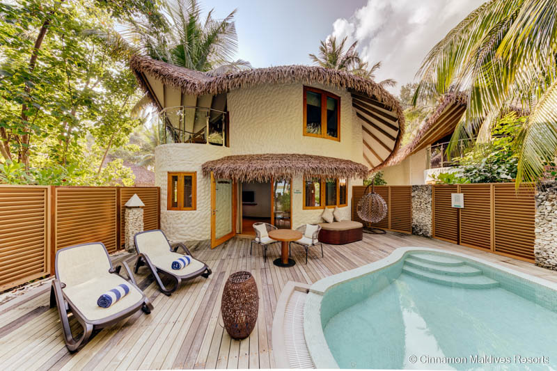 Das Cinnamon Dhonveli Maldives liegt im North Malé Atoll und ist in nur etwa 20 bis 25 Minuten mit dem Schnellboot vom internationalen Flughafen Malé aus erreichbar. Die kleine tropische Insel ist umgeben von einer türkisfarbenen Lagune, die flach abfällt und sich somit ideal zum Baden eignet, auch für Familien mit Kindern. Die Anlage bietet insgesamt 148 Zimmer, die sich auf verschiedene Villen und Bungalows verteilen, teils am Strand, teils im Garten oder direkt über dem Wasser gebaut.