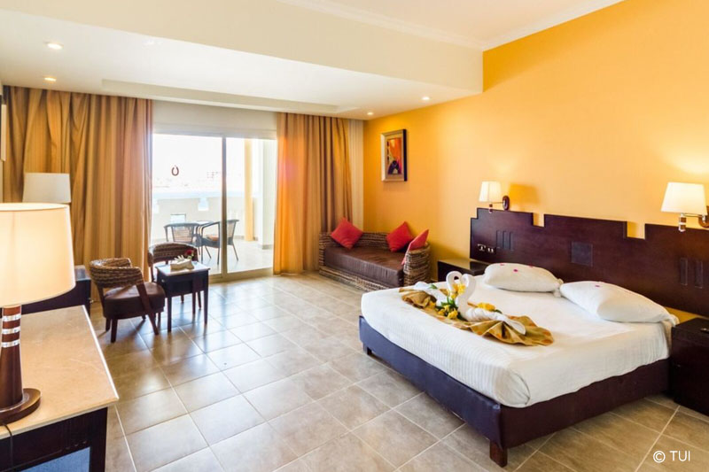 Die 110 klimatisierten Zimmer sind in verschiedenen Kategorien erhältlich, darunter Standardzimmer mit Garten- oder Meerblick sowie Suiten. Jedes Zimmer verfügt über einen Balkon oder eine Terrasse, ein eigenes Bad, einen Flachbild-TV, einen Minikühlschrank, einen Safe und kostenfreies WLAN in den öffentlichen Bereichen. Die Zimmer sind modern eingerichtet und bieten einen komfortablen Rückzugsort für Gäste.