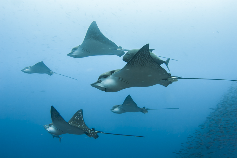 Einer der berühmtesten Tauchplätze der Galapagosinseln erwartet dich: Gordon Rocks. Inmitten starker Strömungen begegnest du Schulen von Hammerhaien, Rochen und Schildkröten – ein Spot für erfahrene Taucher.
