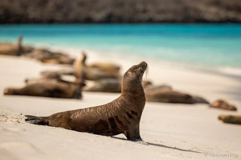 Auf Seymour begegnest du Seelöwen, Weißspitzen- und Schwarzspitzenriffhaien, Hammerhaien, Meeresschildkröten, Adlerrochen, Barrakudas und vielen bunten Rifffischen. Mosquera begeistert mit einem Sandbodenriff, einer großen Seelöwenkolonie und der Chance, sogar Orcas zu sehen.