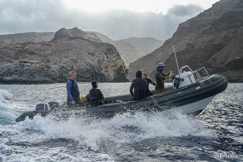 Das Wasser ist glasklar, die Sichtweiten liegen oft bei 40 bis 60 Metern. Die Artenvielfalt ist überwältigend: Schwärme von weißgelben Saint-Helena-Falterfischen umhüllen Felsen und Wracks wie ein lebender Schleier. In Spalten und Höhlen verstecken sich Langusten in ganzen Familienverbänden, während große Drachenköpfe und feuerrote Großaugenbarsche die Grotten bevölkern. Halbendemische Soldatenfische und zahlreiche andere Arten machen jeden Tauchgang einzigartig. Insgesamt warten acht historische Wracks darauf, entdeckt zu werden – darunter die berühmte RFA Darkdale.