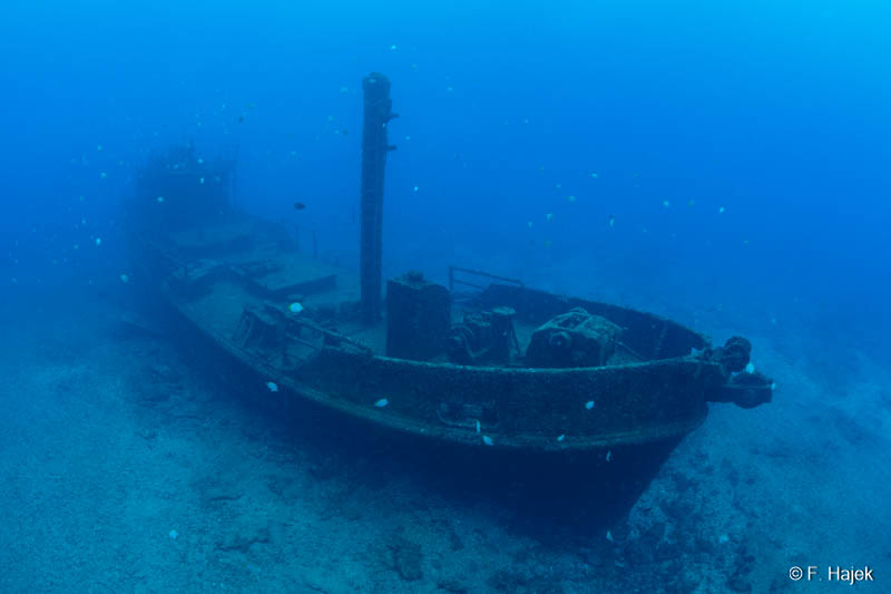 Heute beginnt das Tauchen. Für die Gruppe steht exklusiv die „Dive Frigate“ bereit. Zwei Vormittags-Tauchgänge an nahegelegenen Spots sind geplant, am Nachmittag hast du Zeit für erste Erkundungen oder einen optionalen dritten Tauchgang.