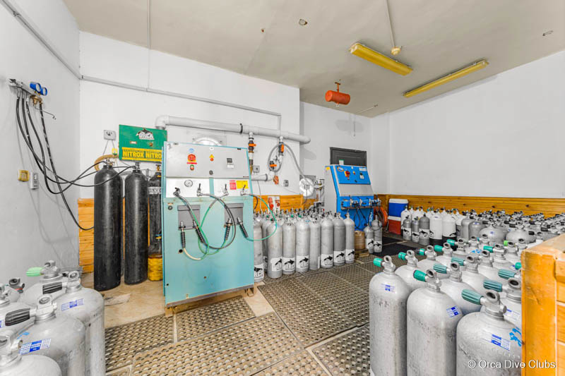 Die Basis ist ausgestattet mit Trockenraum, Waschbecken, Duschen, Equipmentraum, Office, Shop, Schulungsraum, 2 leistungsstarken Bauer Kompressoren, Nitrox Anlage, Flaschen und ausreichend Leihequipment.
