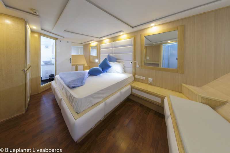 Die MY Blue Seas ist ein 36 Meter langes Stahlschiff mit drei Decks und Platz für maximal 24 Gäste in 12 Kabinen. Auf dem Unterdeck befinden sich sechs Kabinen mit Einzelbetten, auf dem Hauptdeck zwei Kabinen mit Doppelbett und auf dem Oberdeck vier Kabinen mit Doppelbett. Alle Kabinen sind mit eigenem Bad, Dusche, Klimaanlage und Stauraum ausgestattet.