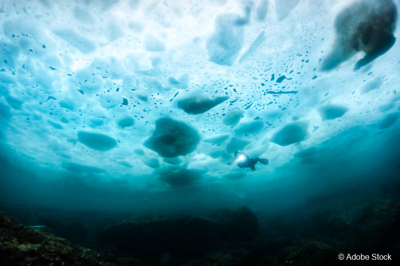 Die Bedingungen sind anspruchsvoll – Trockentauchanzug und Erfahrung im Kaltwasser sind Pflicht. Doch die Belohnung ist einzigartig: Tauchen an Eisbergen, unter gefrorenen Flächen oder in arktischen Kelpwäldern ist ein Erlebnis, das sich tief einprägt. Jede Region hat ihren eigenen Charakter: Grönland mit seinen gewaltigen Eisbergen, Norwegen mit spektakulären Fjorden und Wracks, Island mit vulkanischen Strukturen und die Antarktis als ultimative Herausforderung.