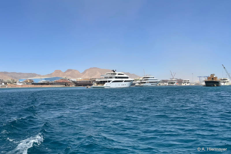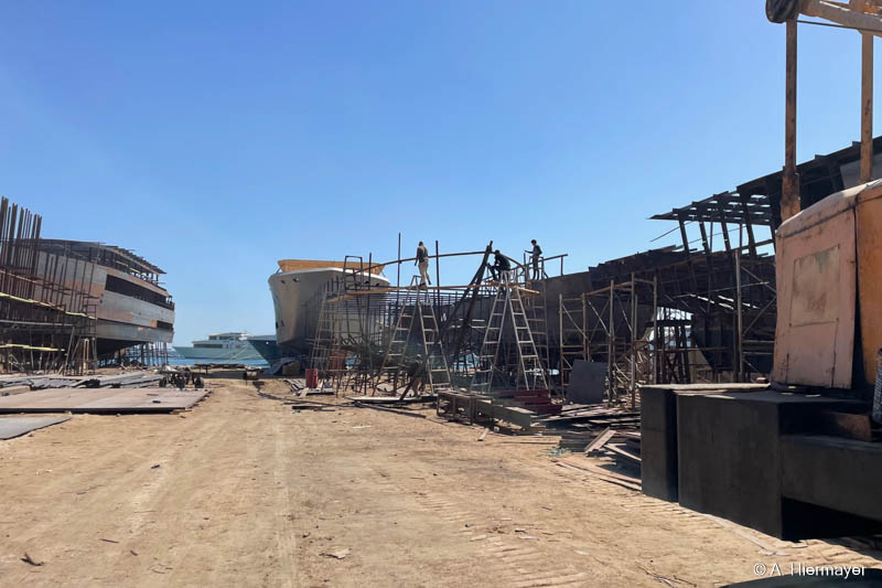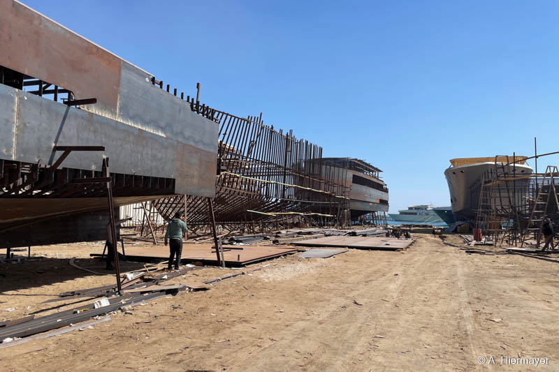 Spannend war für Andy auch der Blick hinter die Kulissen in der Werft bei Safaga, wo Schiffe gebaut und überholt werden. Die Avo lag direkt davor, sodass er die Entstehung und Modernisierung eines Liveaboards aus nächster Nähe beobachten konnte. Für uns bei fish & trips ist dieser Einblick wichtig, weil er zeigt, wie viel Arbeit, Wartung und Feinabstimmung notwendig sind, um ein sicheres und zuverlässiges Safari‑Schiff in Betrieb zu halten.
