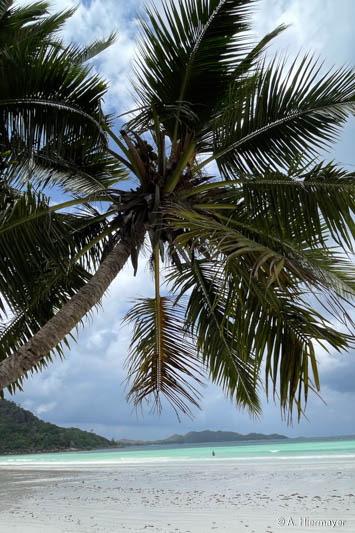 Auf Praslin nahmen wir an einer zweistündigen, sehr informativen Tour durch das Vallée de Mai mit Emmanuel von Masons Travel teil, der fließend Deutsch spricht. Der Strand Cote d’Or ist lang, mit feinem, hellem Sand, wird aber nicht gereinigt. Es lag etwas Seegras, aber kaum Müll. Entlang der parallel verlaufenden Straße gibt es kleine Shops, Bars, einen Supermarkt und einen Geldwechsel-Schalter.