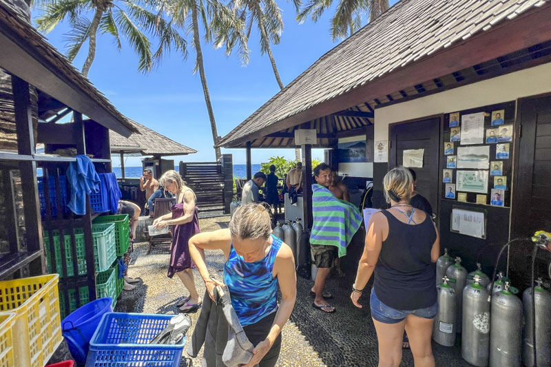 Für Taucher im Norden (Region Tulamben) ist es wichtig zu wissen, dass die meisten Resorts kein eigenes Boot haben und die Boots-Ausflüge mit traditionellen Fischer/Auslegerbooten gemacht werden. Kann das Boot nicht ganz an den Strand fahren, muss man u.U. hineinwaten oder schwimmen, da Stege nicht erlaubt sind. Alternativ gibt es Ausfahrten mit Minibussen zu verschiedenen Strand-Tauchgängen in der näheren und weiteren Umgebung. Deshalb ist es wichtig feste Booties oder Füßlinge zu verwenden, da die Einstiege oft steinig und wackelig sind.