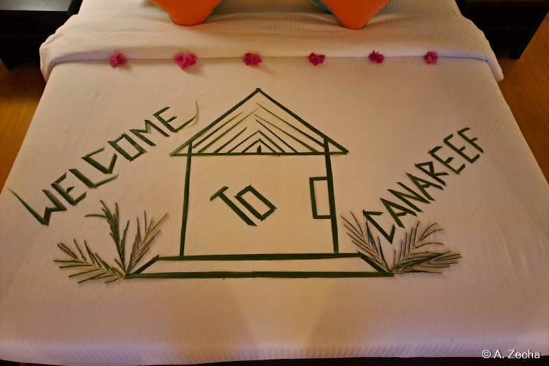 Alex war für sieben Nächte in einer Premium Beach Villa mit Whirlpool untergebracht. Die Villa liegt ruhig am langen Strandabschnitt und bietet viel Platz, Privatsphäre und direkten Meerzugang. Während einer ausführlichen Resort‑Tour zeigt der Front-Office-Manager Sherzod Berdov sämtliche Einrichtungen – und davon gibt es viele. Ein Spa, Tennisplätze, ein Wassersportzentrum, Yoga, ein klimatisiertes Fitnessstudio, ein Kids-Club, der Canareef Eco Park, der Chefs Garden und mehrere Restaurants und Bars sorgen dafür, dass die Woche abwechslungsreich bleibt.