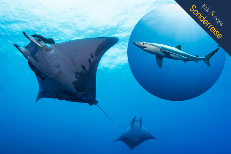 Bei unserem Inselhüfen auf den Azoren besuchst du gleich drei Azoren Inseln: Santa Maria, Faial und São Miguel. Du erlebst dort eine Kombination aus Tauchen, Natur & Kultur abseits des Massentourismus. Dabei dürfen natürlich die Mobulas von Princesa Alice und Ambrosia und auch die Blauhaie nicht fehlen. Whale & Delphin Watching steht genauso auf der To-Do-Liste wie Ausflüge und Wandern. Die Reise ist sowohl für Taucher als auch Schnorchler und/oder Familien bestens geeignet, da neben dem Tauchen auch ausreichend Zeit ist, die Inseln zu erleben.