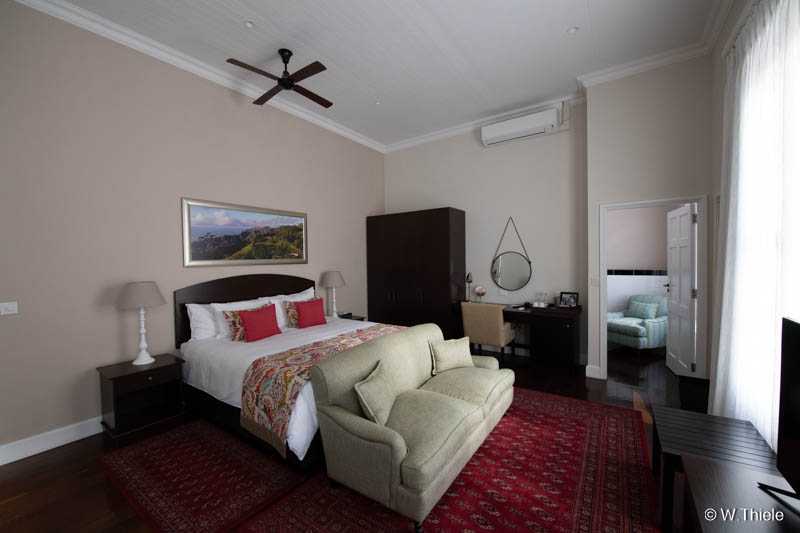 Das Mantis Hotel ist die gehobene Alternative für Gäste mit höheren Ansprüchen. Es liegt ebenfalls im Zentrum von Jamestown, direkt gegenüber der Blue Lantern, und gehört zur renommierten südafrikanischen Mantis Collection. Das Hotel kombiniert britisch-professionelles Ambiente mit modernem Komfort und besteht aus zwei Gebäudeteilen: einem historischen, aufwendig restaurierten Altbau und einem Neubau, der über die Terrasse erreichbar ist.