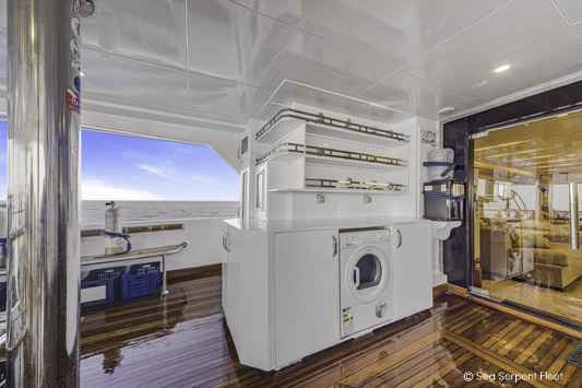 Die Sea Serpent Grand wird regelmäßig gewartet und präsentiert sich technisch auf aktuellem Niveau, mit leistungsstarken Motoren, Entsalzungsanlage und umfangreicher Sicherheitsausstattung inklusive Sauerstoffsystemen und 24-Stunden-Deckwache.