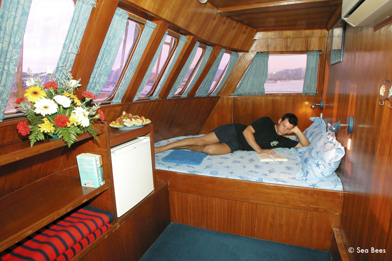 Die Marco Polo ist ein traditionell gebautes Safarischiff mit zwei Decks und insgesamt sechs Kabinen, die Platz für maximal zwölf Gäste bieten. Die Kabinen liegen auf dem Hauptdeck und sind als Doppel- oder Twinbelegung eingerichtet. Sie verfügen jeweils über eine eigene Dusche mit WC, eine individuell regulierbare Klimaanlage und Stauraum für Gepäck und Ausrüstung. Auf dem Oberdeck befindet sich ein Salon mit Sitzgelegenheiten und Medienausstattung, der an einen überdachten Außenbereich grenzt, in dem die Mahlzeiten serviert werden. Die Küche an Bord kombiniert einfache thailändische und internationale Gerichte, die je nach Tagesablauf als Buffet oder Servierteller gereicht werden. Das Schiff legt am Thap-Lamu-Pier in Khao Lak ab und kehrt auch dorthin zurück.
