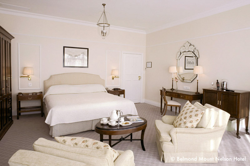 Das Hotel verfügt über 198 Zimmer und Suiten, die sich in verschiedene Kategorien unterteilen – von eleganten Superior-Zimmern bis hin zu großzügigen Garden Cottages und exklusiven Suiten. Alle Unterkünfte sind individuell gestaltet und bieten Klimaanlage, kostenfreies WLAN, Flachbild-TV, Minibar, Safe und luxuriöse Badezimmer mit hochwertigen Pflegeprodukten. Die Einrichtung kombiniert klassische Elemente wie antike Möbel und edle Stoffe mit modernen Akzenten. Viele Zimmer bieten Blick auf den Garten oder den Tafelberg.