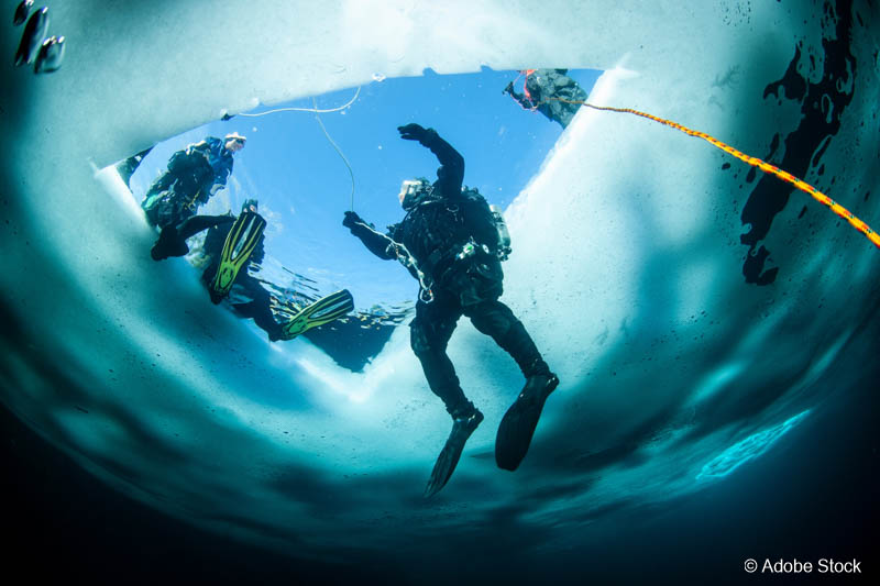 Kaltwasser-Tauchen ist die Königsdisziplin für Abenteurer unter Wasser. Hier geht es nicht um bunte Korallenriffe, sondern um Eis, extreme Natur und absolute Stille. Wer sich in die Polarregionen wagt, erlebt eine Welt, die nur wenigen vorbehalten ist: bizarre Eisformationen, kristallklares Wasser und Lichtspiele, die unter dem Eis wie aus einer anderen Dimension wirken. Die Sicht ist oft überwältigend, und die Begegnungen mit Robben, Walrossen oder sogar Walen gehören zu den unvergesslichen Momenten dieser Reisen.