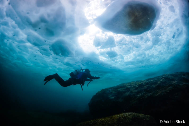 Die Bedingungen sind anspruchsvoll – Trockentauchanzug und Erfahrung im Kaltwasser sind Pflicht. Doch die Belohnung ist einzigartig: Tauchen an Eisbergen, unter gefrorenen Flächen oder in arktischen Kelpwäldern ist ein Erlebnis, das sich tief einprägt. Jede Region hat ihren eigenen Charakter: Grönland mit seinen gewaltigen Eisbergen, Norwegen mit spektakulären Fjorden und Wracks, Island mit vulkanischen Strukturen und die Antarktis als ultimative Herausforderung.