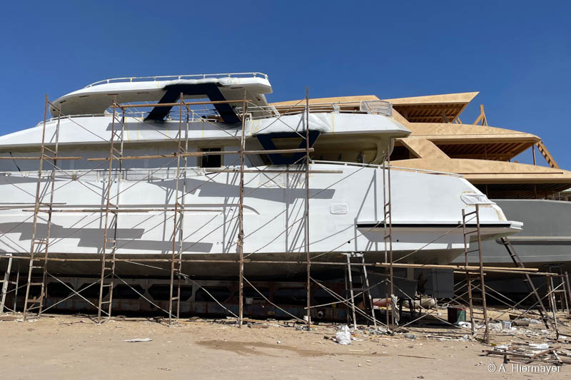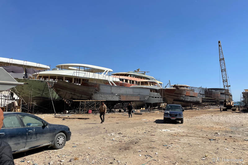 Spannend war für Andy auch der Blick hinter die Kulissen in der Werft bei Safaga, wo Schiffe gebaut und überholt werden. Die Avo lag direkt davor, sodass er die Entstehung und Modernisierung eines Liveaboards aus nächster Nähe beobachten konnte. Für uns bei fish & trips ist dieser Einblick wichtig, weil er zeigt, wie viel Arbeit, Wartung und Feinabstimmung notwendig sind, um ein sicheres und zuverlässiges Safari‑Schiff in Betrieb zu halten.