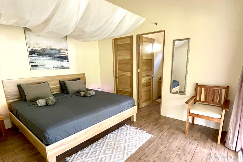 Für Paare bietet die Casa Romantica ein lichtdurchflutetes, rundes Schlafzimmer mit Kingsize-Bett und Esstisch. Die überdachte Outdoor-Küche verleiht dem Ambiente ein exotisches Flair, und das eigene Badezimmer ist ebenfalls überdacht und durch das Freie erreichbar. Die Unterkunft liegt mitten im tropischen Grün und ist ideal für ein ruhiges, naturnahes Erlebnis zu zweit.