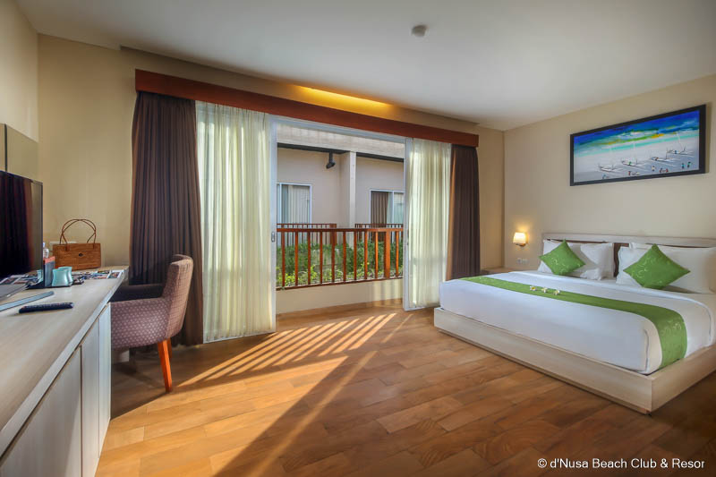Das D’Nusa Beach Club & Resort liegt direkt am weißen Sandstrand von Nusa Lembongan und bietet eine entspannte Atmosphäre mit Blick auf das Meer. Die Anlage umfasst rund 50 Unterkünfte in verschiedenen Kategorien, darunter Standardzimmer, Deluxe-Zimmer, Villen und Poolvillen. Die Standard- und Deluxe-Zimmer sind in zweistöckigen Gebäuden untergebracht und verfügen über Klimaanlage, Safe, Minibar, TV, Kaffee-/Teezubereiter sowie Balkon oder Terrasse. Die Villen bieten mehr Platz und Privatsphäre, einige verfügen über einen eigenen Pool. Die Einrichtung ist modern und funktional, mit hellen Farben und klaren Linien.