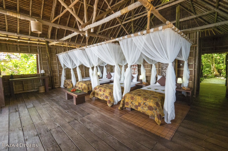 Das ganzjährig geöffnete Resort Raja4Divers liegt auf der kleinen privaten Insel Pef, im Gebiet von Raja Ampat. Die Eigentümerin Maya aus der Schweiz hat mit dem Bau des Resorts im Papua Stil einen langgehegten Traum erfüllt und bietet abseits des Massentourismus ihren Gästen ein kleines familiäres und komfortables Tauchresort direkt an einem palmengesäumten Sandstrand.