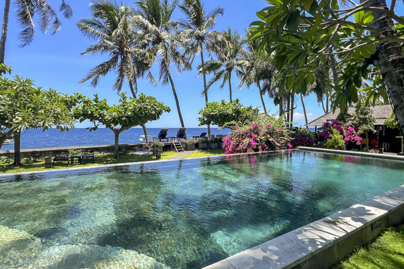 Das Hotel selbst ist eine weitläufige Anlage mit sehr schönem Garten und vielen verschiedenen Unterkünften in jeder nur erdenklichen Kategorie bis hin zum private Pool. Und es gibt einen Strand! Perfekt für einen Kurzaufenthalt im Osten Balis.